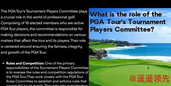 其主要职责之一是监督 PGA 巡回赛的规则和比赛规定的制定。